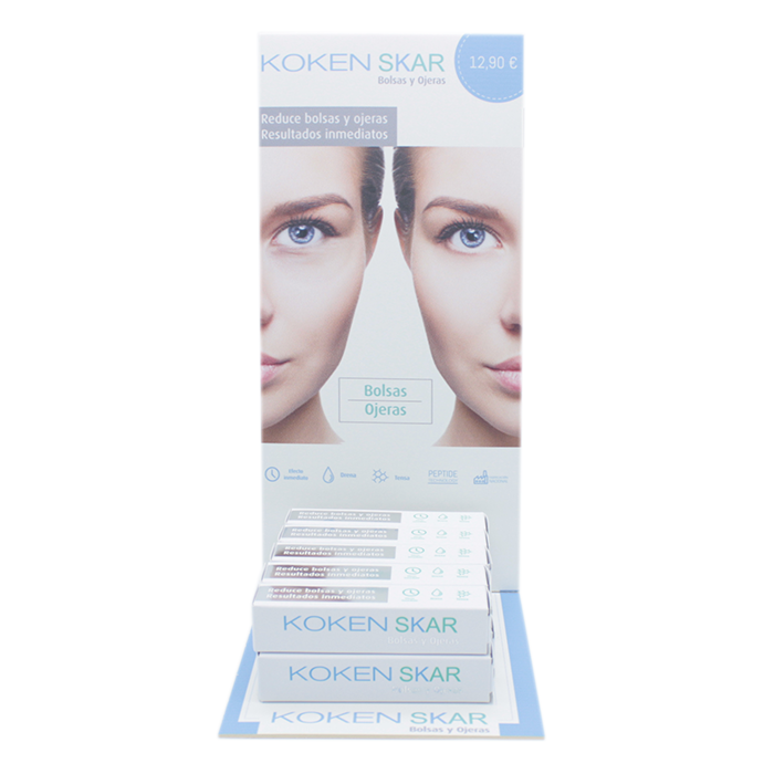 KOKEN SKAR es un serum de tratamiento que reduce visiblemente y de inmediato las bolsas y ojeras que se forman en el contorno de los ojos.