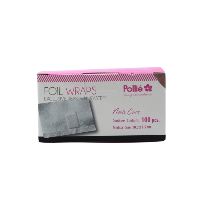El pack de 100 láminas envolventes para uñas de Pollié es una solución ideal para la eliminación de esmaltes semipermanentes, geles y acrílicos, simplificando el proceso y ofreciendo resultados profesionales en cada uso. Estas láminas envolventes están diseñadas para cubrir cada uña por separado, maximizando la acción del removedor y ayudando a una remoción precisa y sin esfuerzo.