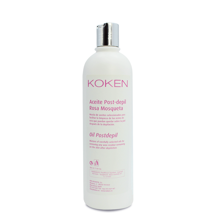 Envase de 500 ml. Mezcla de aceites seleccionados para facilitar la limpieza de los restos de cera que quedan sobre la piel después de la depilación.