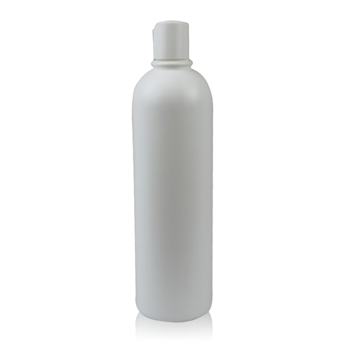 Botella de plástico blanco de cierre a rosca, con capacidad de 500 ml. Con tapón incluido.