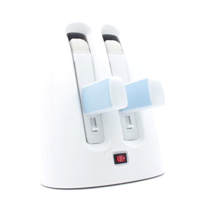 Calentador especializado para empresas de cosmética que permite la inserción de 2 cartuchos de Roll-on DUO. Incluye dos pistolas que facilitan la depilación gracias a su ergonomía y al enganche entre pistola y cartucho, que evita la caída del mismo. Conexión a 230V con un cable de 1 metro para toma de corriente de pared.