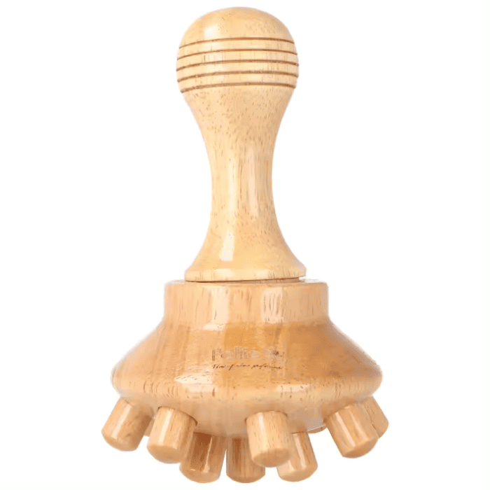 Herramienta Pollie de madera para zonas amplias. Estimula el drenaje y la circulación; ayuda a mejorar el aspecto de la celulitis. Mango ergonómico, fácil de usar.
