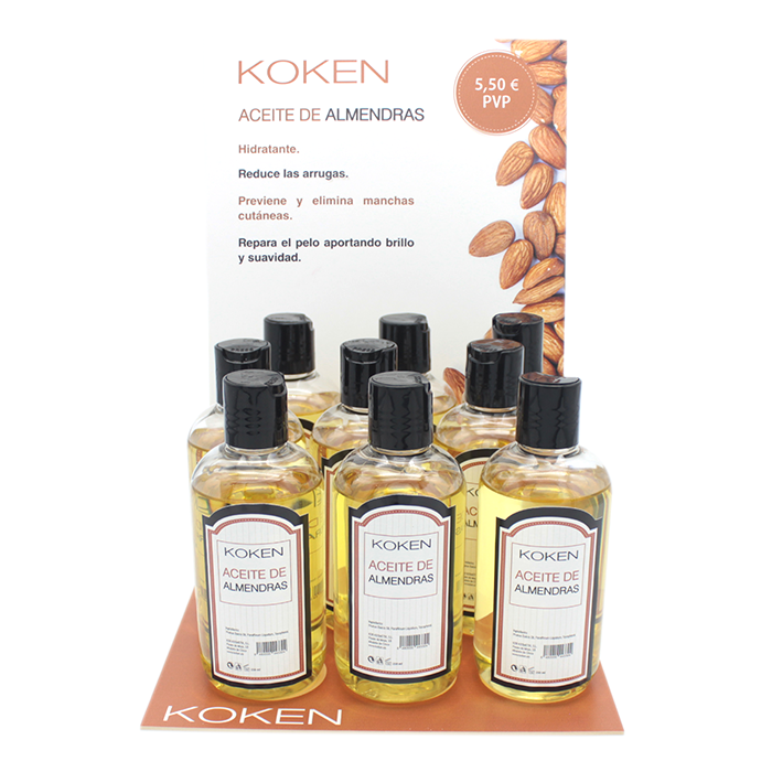 Expositor + 9 unidades de Koken Aceite de Almendras de 250 ml