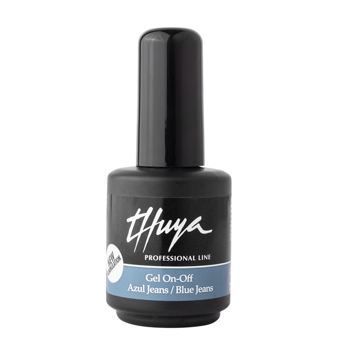 Esmalte permanente Azul Jeans, de la línea Gel on-off de Thuya.
