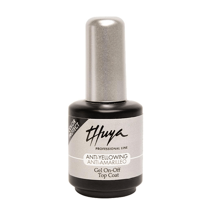 Top Coat para manicuras permanentes. Prolonga, potencia el color y aporta un acabado brillo. Top Coat de la línea Gel On-Off de Thuya.