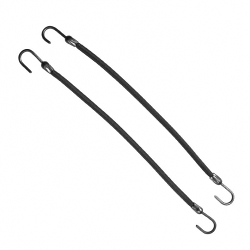 Pack de 12 gomas con ganchos en ambos extremos de color negro.