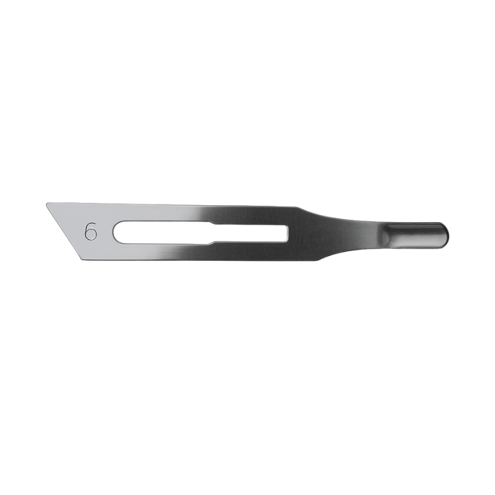 Pack de 12 gubias nº6 estériles y desechables. Corte ancho y curvo para callosidades grandes. Herramienta segura y eficaz para podología profesional.