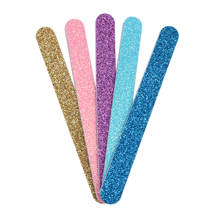 Pack con 5 limas acolchadas, con purpurina de colores.