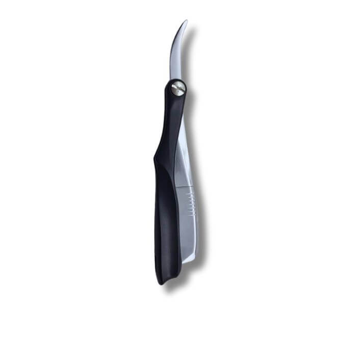 Consigue un afeitado preciso y suave con la navaja para afeitar y retoques de Original Cherry. Su diseño ergonómico y lâmina canalada ofrecen un corte preciso y cómodo, ideal para profesionales y uso personal. Con un mango negro de fácil agarre y superficie galvanizada, es una herramienta duradera y fácil de limpiar, perfecta para resultados impecables en cada uso.