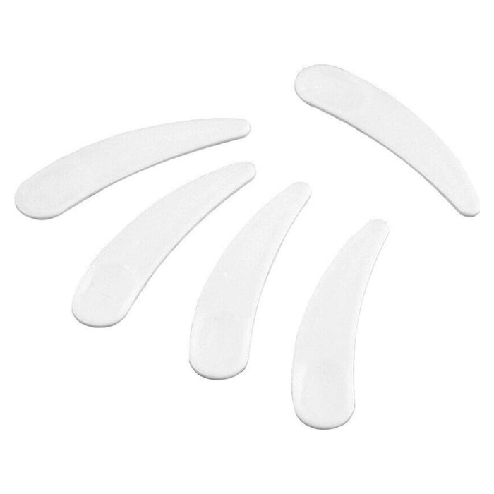 Fabricadas en un material transparente de alta calidad, estas espátulas son resistentes, ligeras y fáciles de limpiar. Su tamaño compacto las hace perfectas para llevar en el bolso, neceser o kit de maquillaje. Además, son reutilizables, lo que las convierte en una opción más sostenible para el cuidado personal.