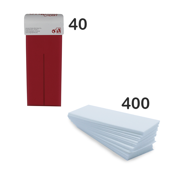 Pack especial de depilación roll on. Incluye 40 unidades de nuestro roll-on más vendido, el de fresa , y 400 bandas de celulosa de primera calidad.