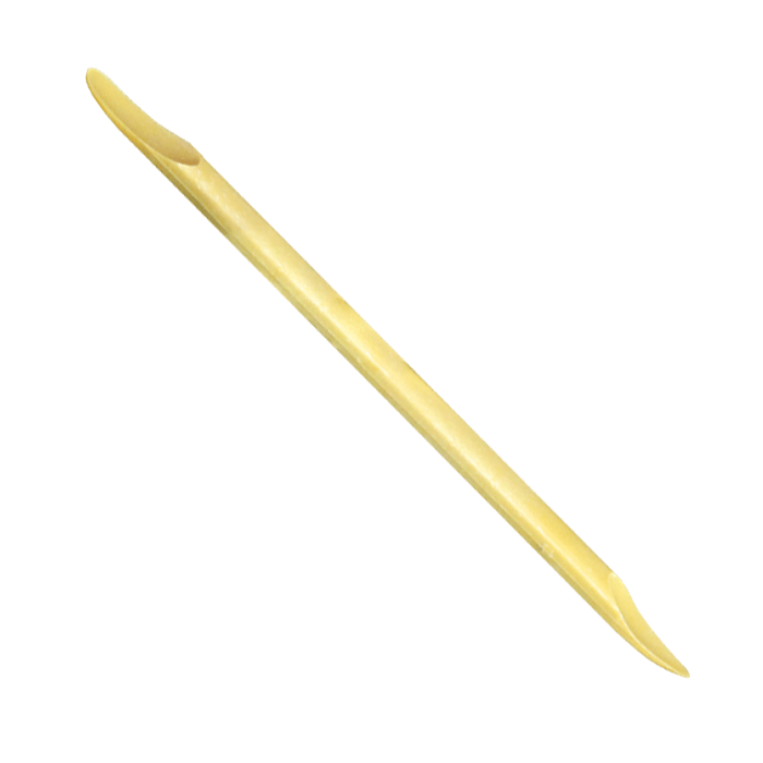 Baja pieles de plástico con punta biselada para empujar las pieles hacia la base de la uña. El extremo opuesto cuenta con punta afilada para llegar debajo de la uña con objeto de limpiarla completamente.