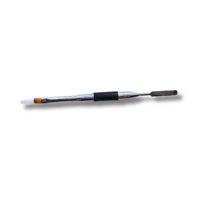 El pincel gel + empujador de cutículas está diseñado para facilitar el proceso de manicura, tanto para uso personal como profesional. Su pincel garantiza una aplicación uniforme de geles y esmaltes, mientras que el empujador te permite preparar tus uñas de manera rápida y efectiva, consiguiendo un acabado impecable.