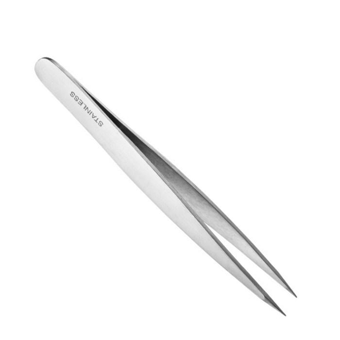 Pinzas de depilar metálica de acero inoxidable, punta fina, 9.5 cm.