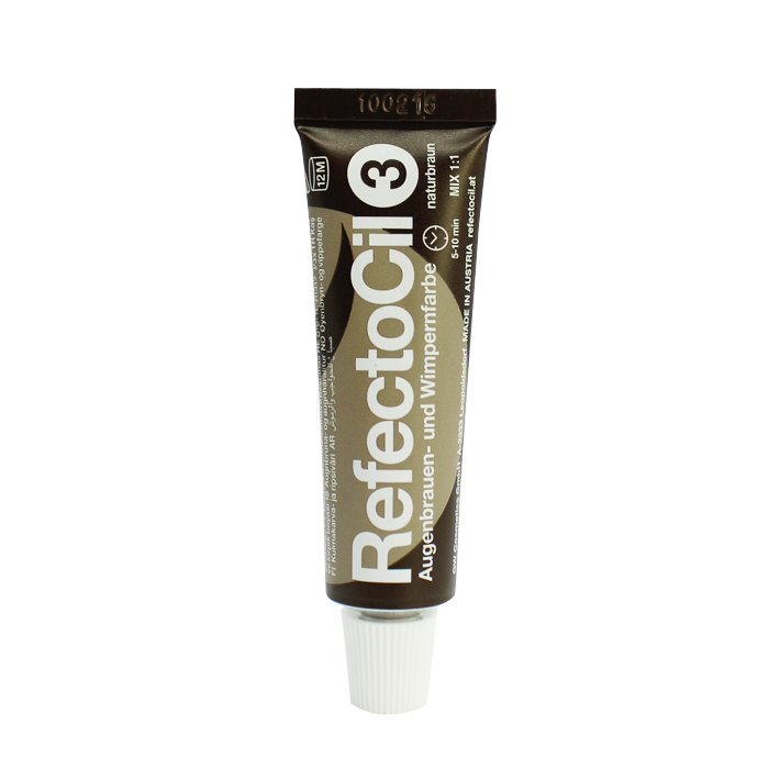 Tinte para pestañas y cejas color marrón fuerte.